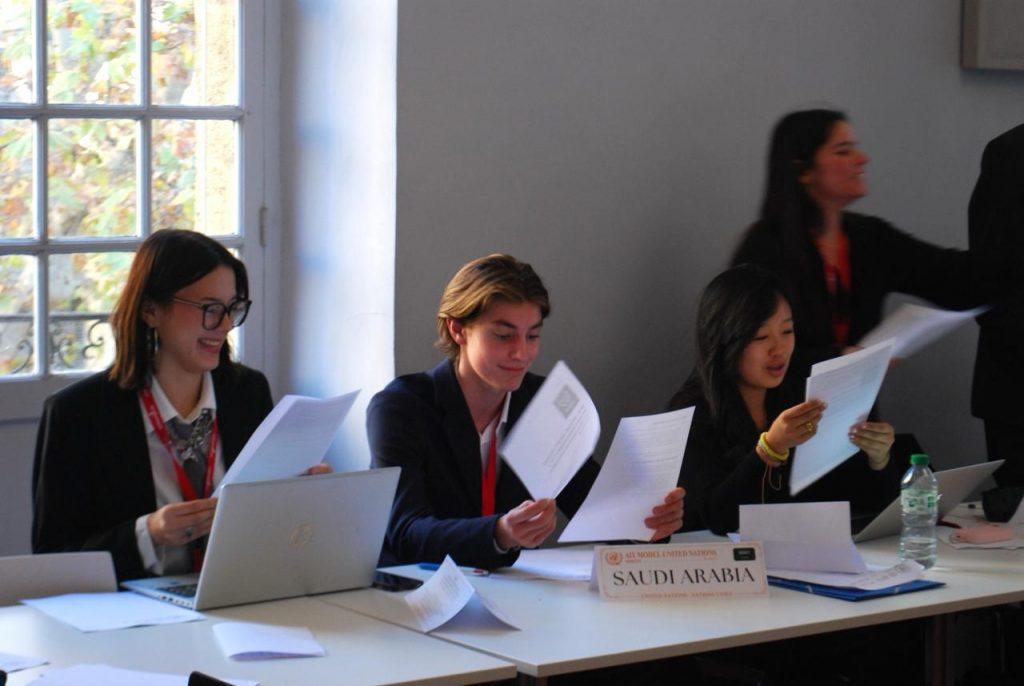 Madeleine : Pendant 2 jours, plusieurs dizaines d’étudiants débattent sur des sujets précis tout en respectant le point de vue du pays qu’ils représentent. À la fin du week-end, chaque comité rédige une résolution, un papier détaillant les solutions trouvées aux problématiques. Le Aix MUN est aussi un moment de rencontres, j’ai pu échanger avec des étudiants marocains ou encore croates, mais aussi avec des étudiants français d’Avignon ou de Nice. Ces rencontres m’ont été très enrichissantes, et j’ai déjà hâte de vivre la prochaine édition !