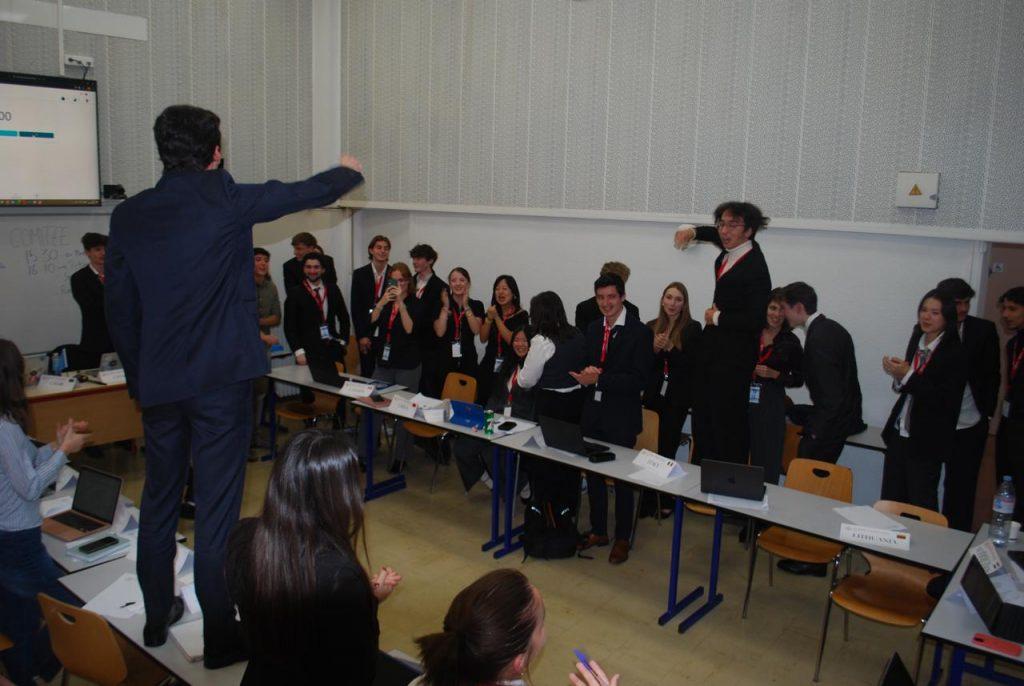 André : Chaque année, l’École accueille des centaines de participants, répartis dans des différents comités, en anglais ou en français, tels que l’OTAN, le Conseil de sécurité de l’ONU, l’INTERPOL, l’UNESCO, la COP ou encore UN Women. Durant la conférence, chaque étudiant représente un pays, et doit négocier, débattre, et défendre les intérêts de son état, pour pouvoir rédiger des résolutions avec les autres délégations. C’est une excellente immersion dans les mécanismes de la diplomatie internationale, mais aussi un super moment d’échange, et de pouvoir rencontrer des participants du monde entier.