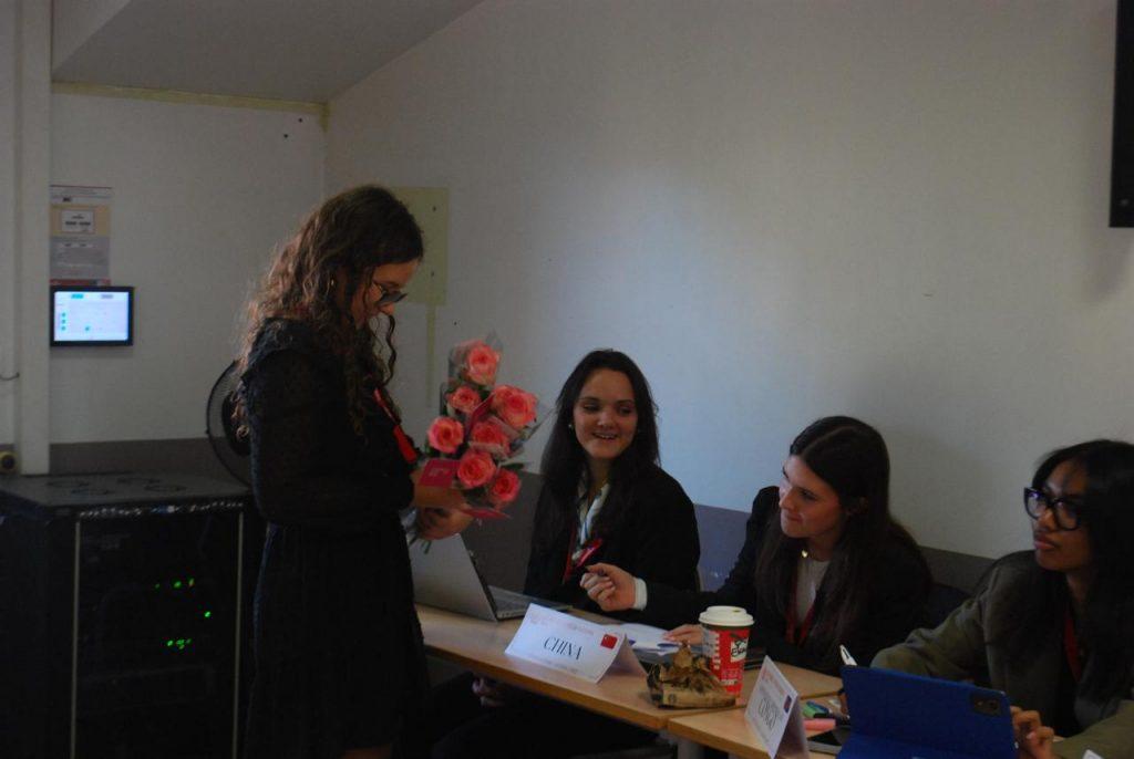 Madeleine : Pendant le MUN, j’étais chair du comité UN Women pour le droit des femmes. Mon rôle consistait à animer la séance, contrôler le temps et l’équité de parole et gérer les débats. C’était mon premier MUN en tant que chair, donc j’appréhendais un peu. Ça reste un rôle important pour assurer la courtoisie des débats et en général le bon déroulement de l’événement. De plus, mon comité était en anglais, et j’avais peur de ne pas avoir le vocabulaire spécifique aux simulations. Cependant, je n’étais pas toute seule, j’avais un super binôme pour animer la simulation avec moi ! Finalement, tout s’est très bien passé. J’étais dans un comité débutant, où les déléguées n’avaient pas beaucoup d’expérience comme moi. On a pu apprendre tous ensemble de nos erreurs, dans la bienveillance et la bonne humeur, sans aucun jugement.
